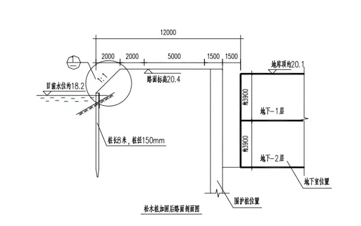 本工程地下室距離河道較近,地下室開挖深度從地表向下約10米,地下土中含砂量較大,河道邊坡含砂較多,泥質層較深、強度較低、壓縮性高、地基承載力不足,在自重作用和動態變化下即發生加大沉降,必將會導致路堤的坍塌和失穩,容易產生不均勻、不穩定和滑動面,需進行土方回填壓實后進行道路施工,因此采用輕便的技術措施對河道邊土層地基進行加固處理。
